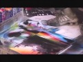 E o femeie, ce cu o rapiditate si un talent iesit din comun , realizeaza in cateva minute un tablou .......daca ii priviti adidasii, veti realiza de ce a ales acest mod de a-si vinde lucrarile .